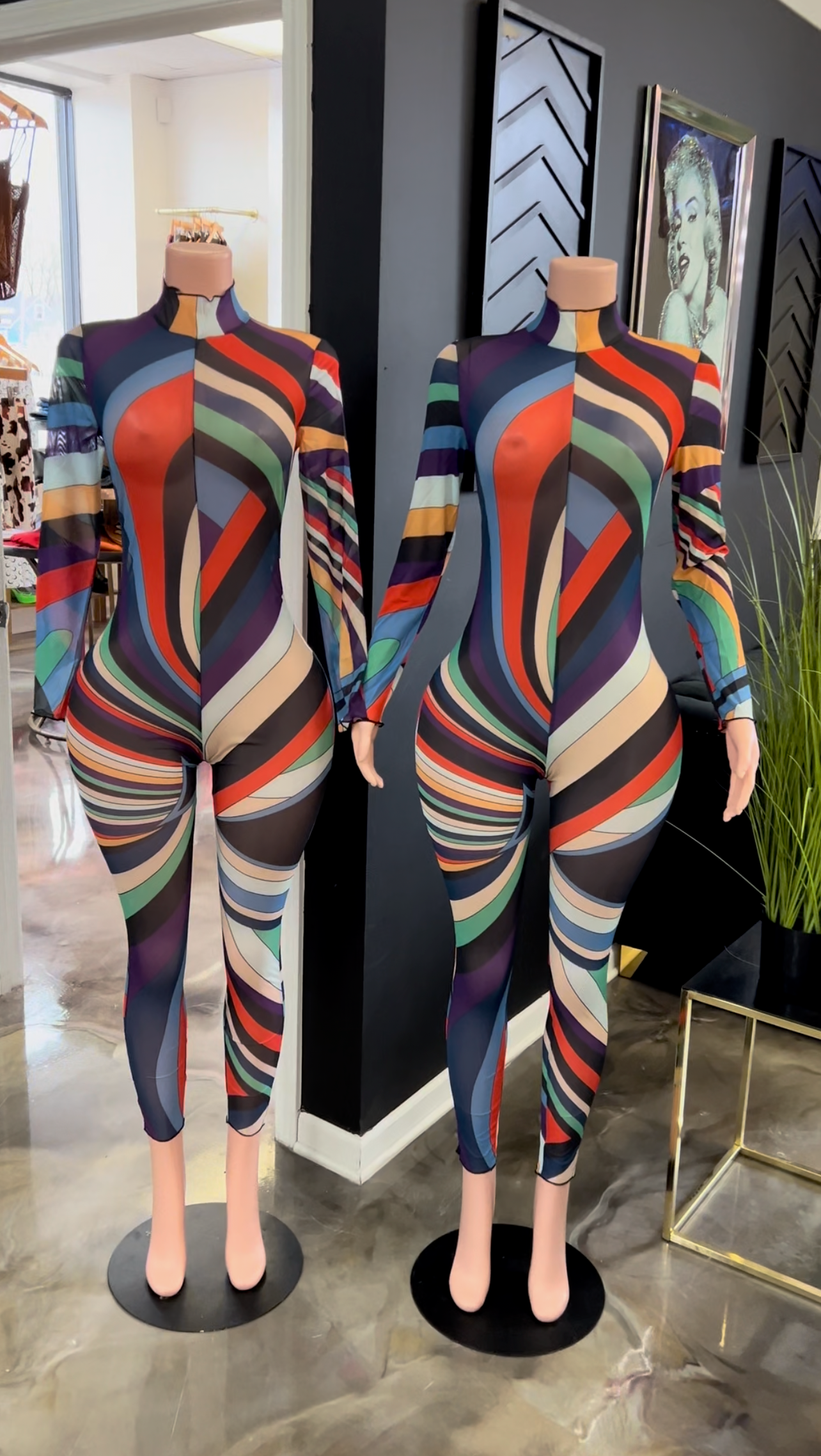 The Little Miss Drama Mesh Jumpsuit features a sleek, form-fitting design that enhances the wearer's silhouette. Made from breathable mesh fabric, this jumpsuit offers comfort while maintaining a stylish appearance. Its sexy aesthetic is suitable for various occasions, allowing for versatile styling options.