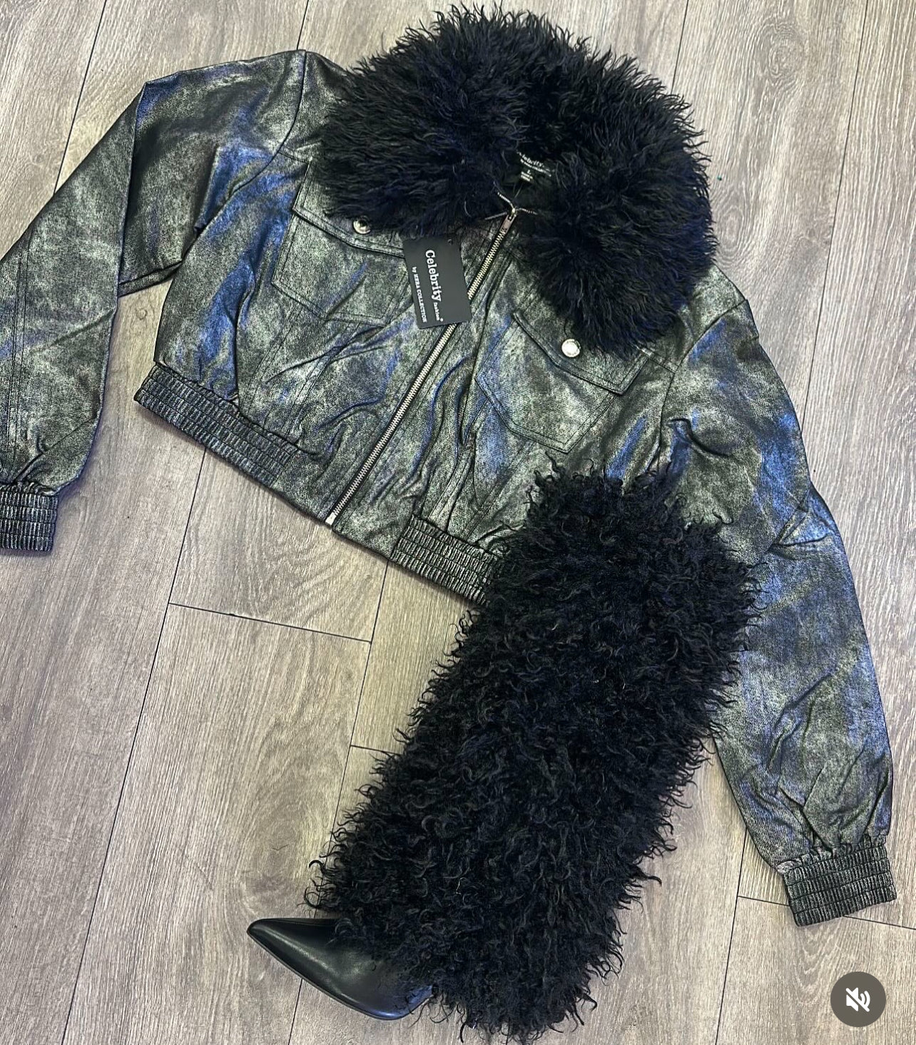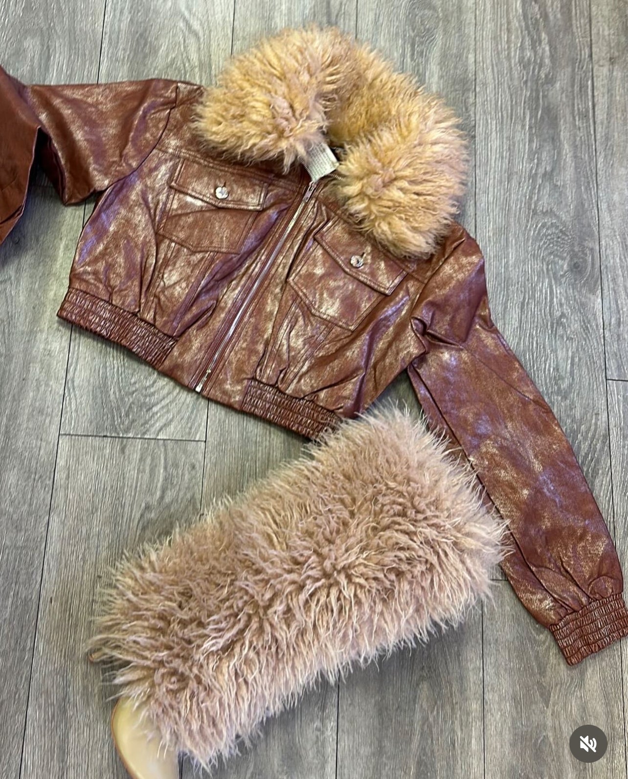 Miss Ma’am Leatherette Fur Crop Jacket